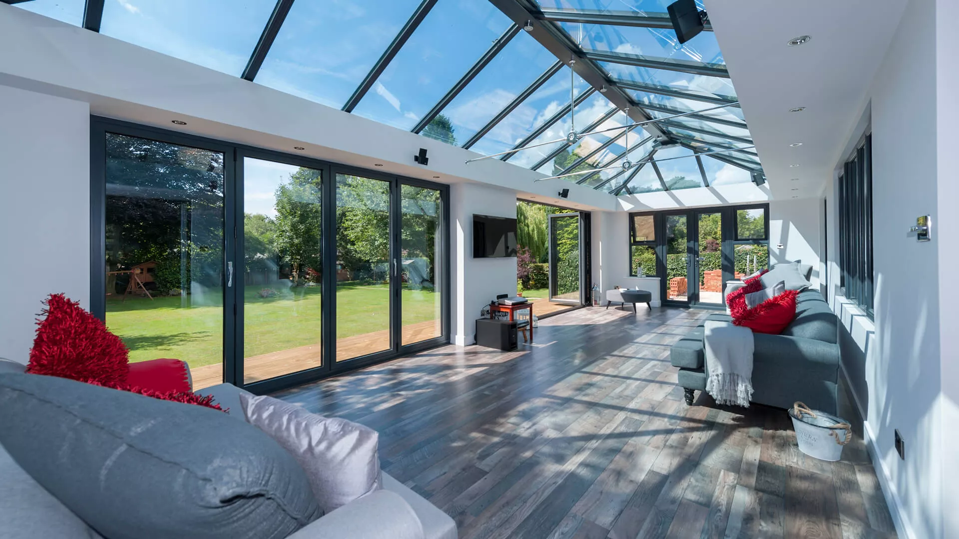 Glass roofs are a popular choice among our customers for maximising natural light, creating a bright and airy feel, and offering views above.